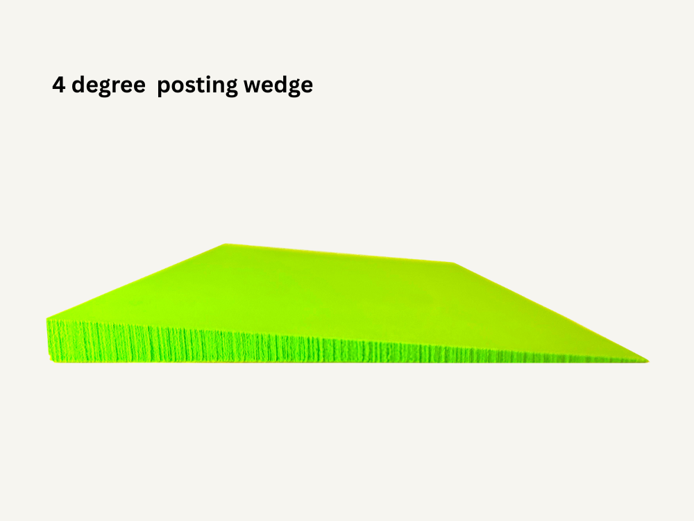 Or, try all four for a 12% savings: the Posting Wedge Sample Pack option includes one wedge each at 12-inch length in 2-degree, 3-degree, 4-degree inclines, and 6-degree incline — all with peel-and-stick backing.